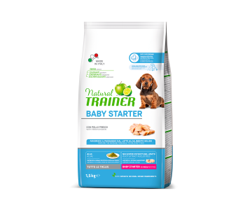 Додати до списку порівнянняNatural Trainer Small Puppy & Junior Fresh Chicken е пълноценна и балансирана храна без глутен, отговаряща на хранителните нужди на малките кученца от дребните породи. Малките кученца имат много кратка фаза на растеж (която завършва около 10 месеца от живота), деликатна и незряла храносмилателна система и трудно дъвчене. Гранулите Trainer Natural Small Puppy & Junior Fresh Chicken предлагат функционална диета, която отчита специфичните хранителни нужди на кученцата от малки породи, като осигурява всички основни хранителни вещества, допринасящи за общото им благосъстояние. Natural Trainer Small Puppy & Junior Fresh chicken поддържа общото ежедневно благосъстояние на вашето кученце, благодарение на добавянето на важни хранителни вещества и естествени вещества, извлечени от плодове и зеленчуци, включително: