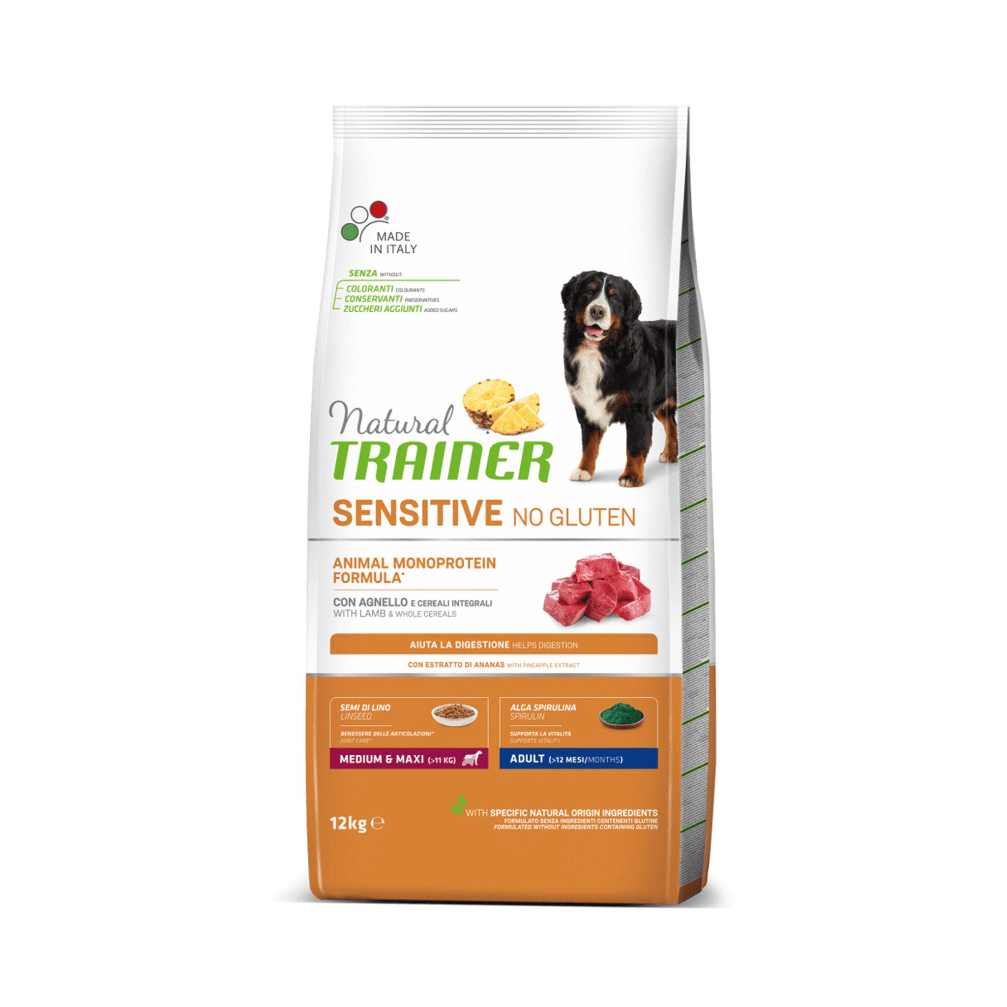 Сухой корм для собак Natural Trainer Dog Sensitive Adult Medium&Maxi With Lamb (НАТУРАЛ трейнер ДОГ сенситив Едалт Медиум энд Макси с ягнятиной и цельными зернами)