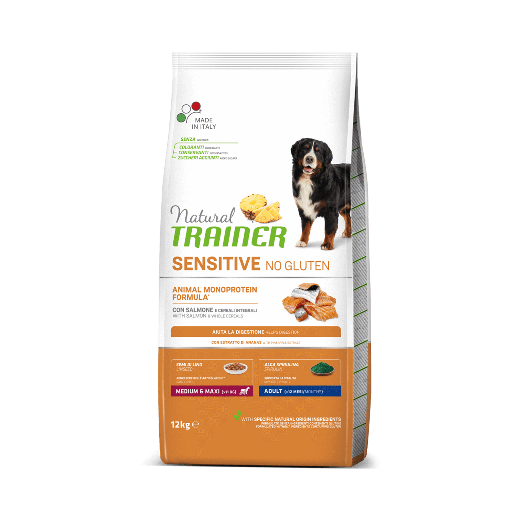 Сухой корм для собак Natural Trainer Dog Sensitive Adult Medium&Maxi With Salmon (НАТУРАЛ трейнер ДОГ сенситив Едалт Медиум энд Макси с лососем и цельными зернами)