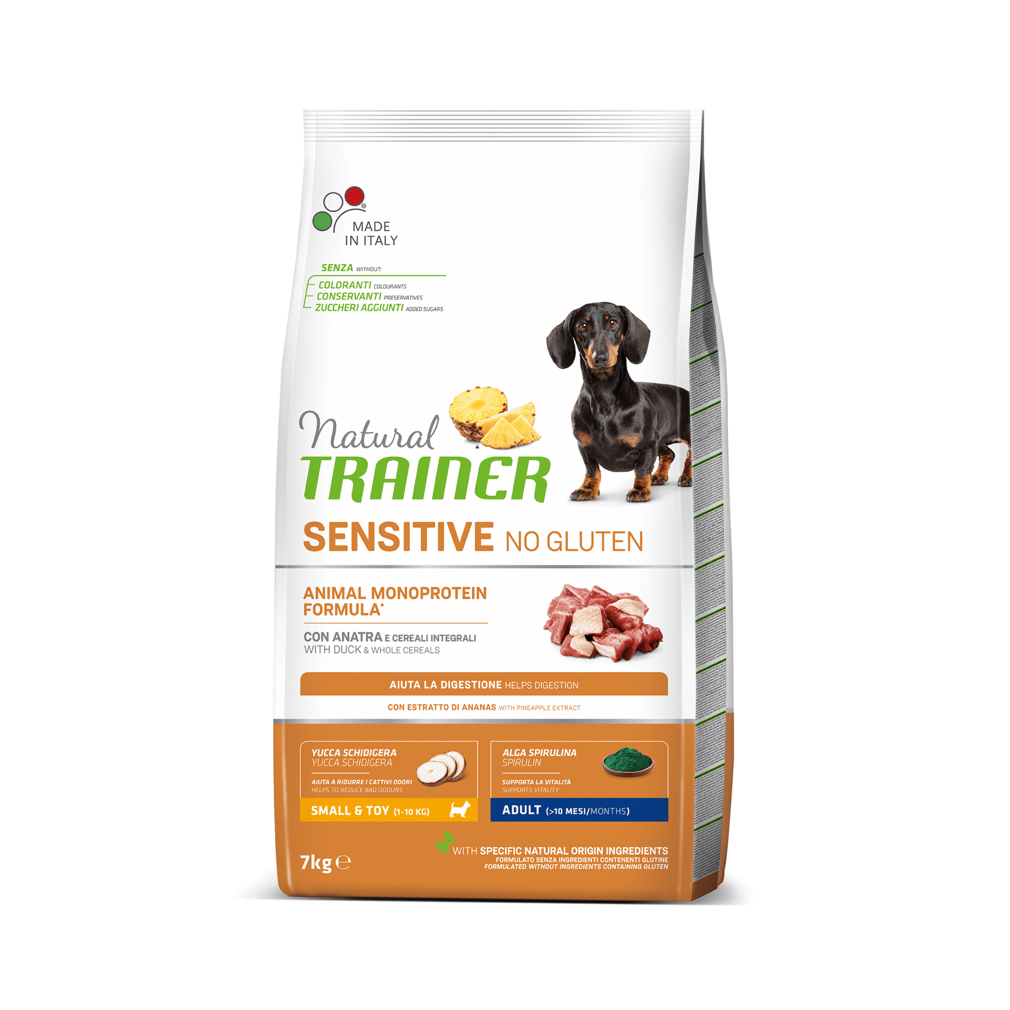 NATURAL TRAINER DOG SENSITIVE ® (НАТУРАЛ трейнер ДОГ сенситив ® ) Едалт Мини с уткой и цельными зернами.